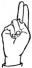 На ћирилици написано БУДИМИР ГАЉКОВИЋ састоји се из 15 слова [?]. Исписано ћириличном једноручном азбуком за глувонеме: